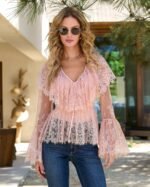 Be the first to review “Bohemian Long-Sleeve Lace Blouse Pink” Cancel reply