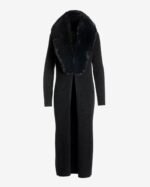 Faux Fur Collar Ribbed Long Cardigan Black/Black